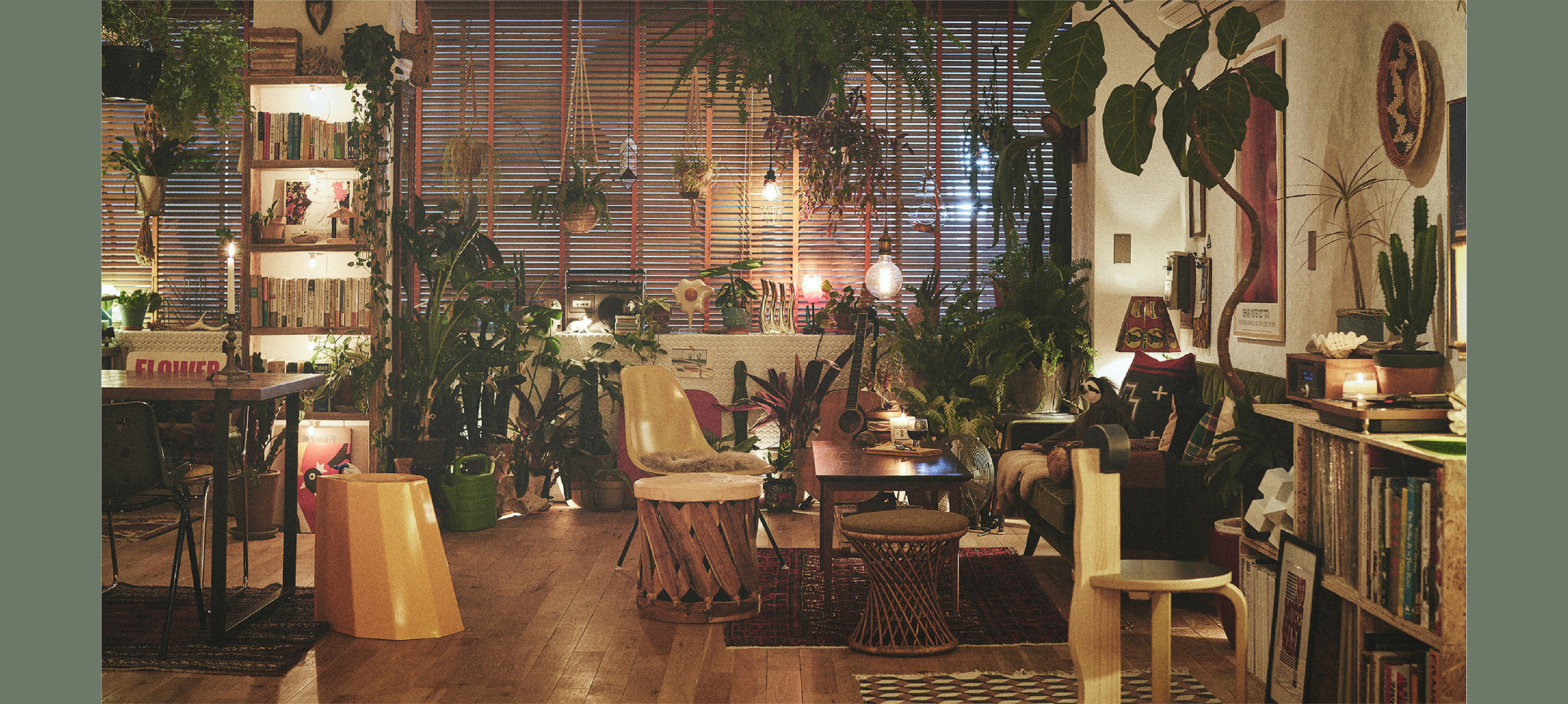 まるで本当に人が住んでいるかのようなリアル感と、それを包み込む圧倒的な植物たち…